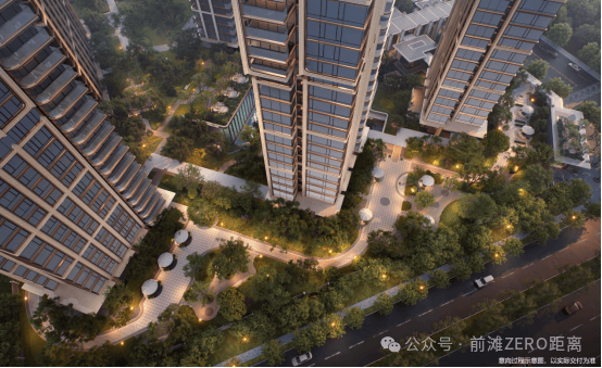 在景观方面,项目内部设置约3500㎡下沉庭院,地下通过坡地自然过渡至地上园区,在核心景观区,通过约6.6米超高架空与6.3米下沉庭院,打造约13米高差的全维森境体验。