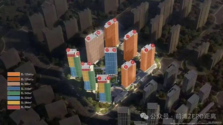 项目规划了七栋百米高层住宅(28-32层)、1栋83米高住宅(25层)和一栋86米高住宅(26层),容积率非常大。全部楼栋均采用一层架空设计,西侧四栋南偏西建筑群下设置了超大尺度的下沉庭院。