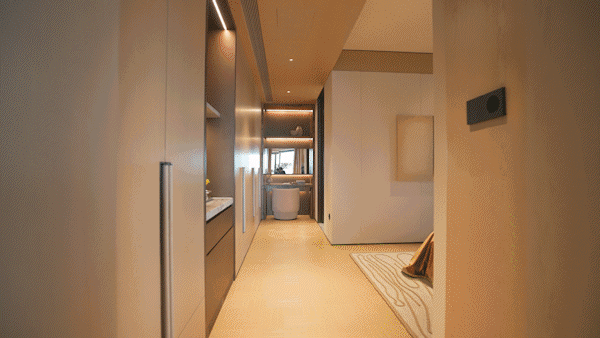 每个卧室都是独立的精神领地,尺度感与舒适度兼具。尤其是是主卧套房,临窗独立浴缸倒映江景,泡澡时仿佛漂浮于黄浦江之上,品味与奢华在此刻共鸣。