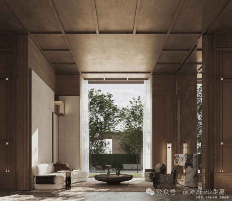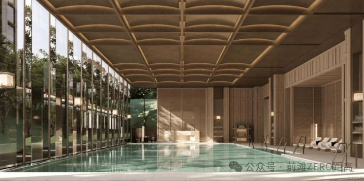 会所系统环绕水苑展开,泳池、健身、瑜伽、私宴与茶室都被包裹在自然之间;近4000㎡的全域架空层则化身为立体社交客厅,书吧、棋牌、亲子与学习空间有机生长;连地下空间也被赋予自然的渗透,约30米面景的中央车站大厅,将光与绿意引入地库,让归家像步入一座埋入自然的殿堂。