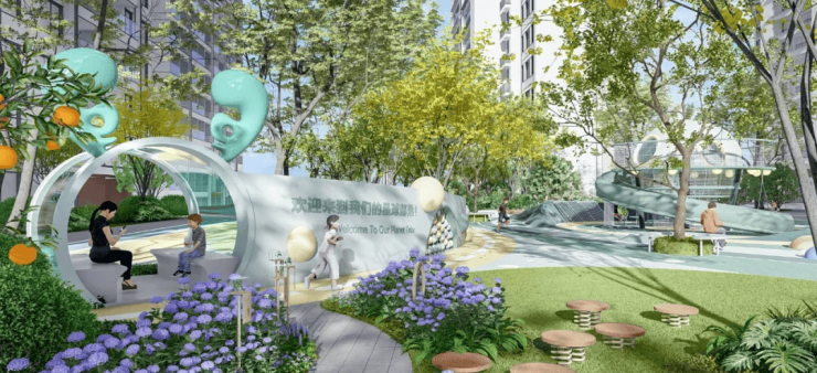 1.8超低容积率和约35%绿化率,约7000㎡中轴景观,涵盖约3000㎡多功能中央草坪和约200米景观长廊,住进大自然。