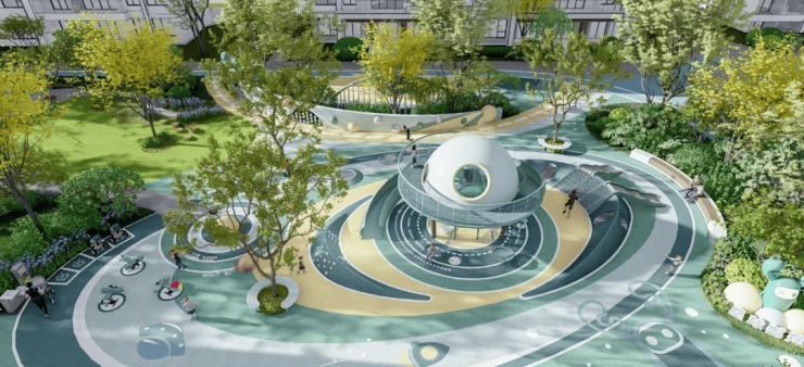 两轴一环五进空间,体现江南礼序归家仪式感,24小时跑道为生活添加健康活力,一幅江南画卷在此展开。