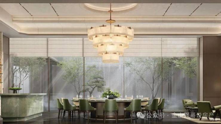 产品设计上处处彰显细节:叠墅做到上下分层的独立空间,一楼带庭院,二楼享露台,6.8米挑高客厅搭配全景落地窗,将湖景与园景引入室内;联排则打造“前庭后院”的私密格局,270度环幕视野无遮挡,预留的电梯井可满足多代同堂需求。社区内更规划约1700㎡星级会所,涵盖恒温泳池、私宴厅、健身空间等,为业主提供专属社交场域。