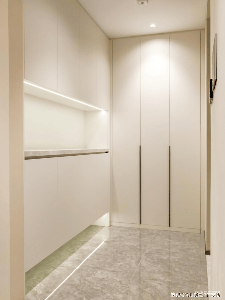 入户后的L型独立玄关,预留收纳系统承载生活烟火,从钥匙、包包的收纳到鞋子、日常次净衣的更换,空间实用性与生活舒适感得以平衡.入户墙面上的华为智能面板六键/三键模式,操作方便,还能将各种电器纳入生活场景进行高效管控,作为全屋智能核心设备,更可实现一键切换场景模式,让科技在日常的每一处流动着便捷.