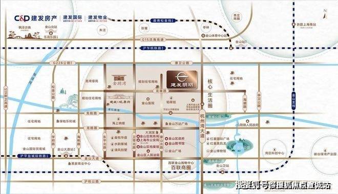 “上海湾区”高能起点上,金山新城正芯以成片式住宅开发,汇聚政务、商务、生活等顶层资源,构建约1.8平方公里“九宫格”核芯生活版图,驱动金山新城强势崛起。
