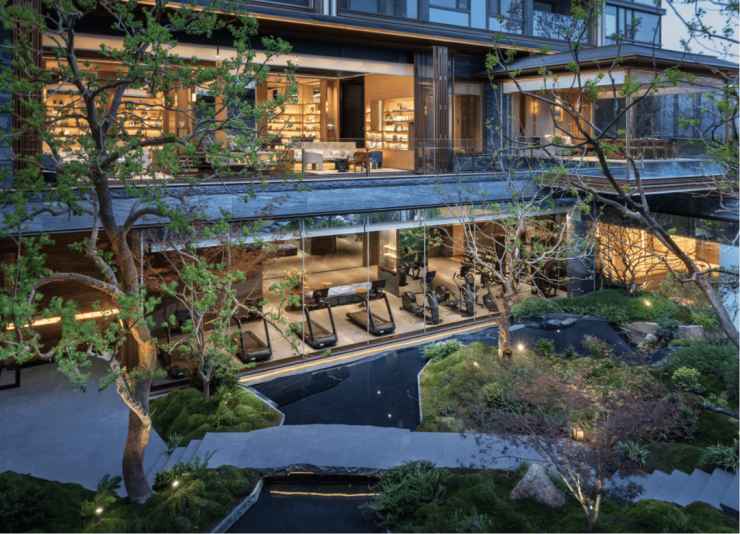 园林设计园藏天地、重构山水,在立体空间中重构叠山理水的意境,充分结合上海的在地文化,打造知停而行的庭园;