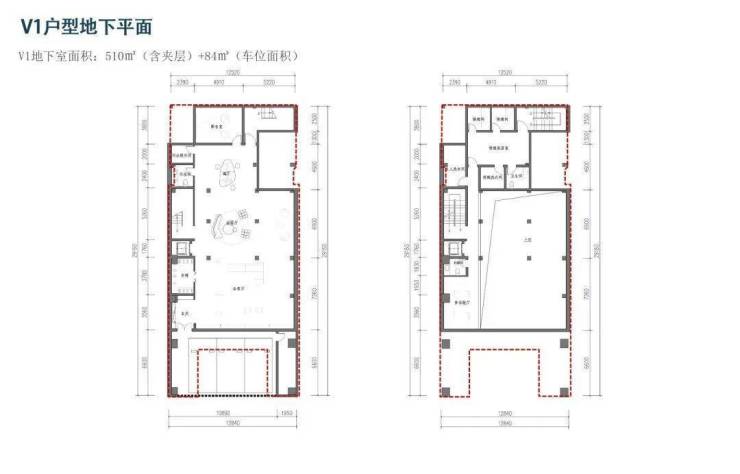 v1户型:地上3层约847平、地下2层约510平