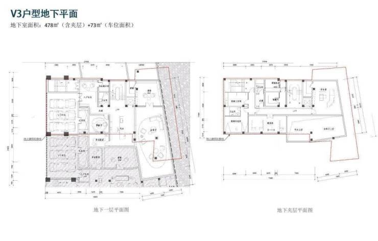 v3户型:地上3层约920平、地下2层约478平