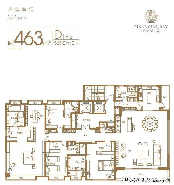 建面约463㎡户型一层一户两梯设计,主卧使用面积约90㎡,保姆房使用面积约12㎡,以奢阔尺度和非凡想象力,问鼎临港楼市顶豪桂冠。