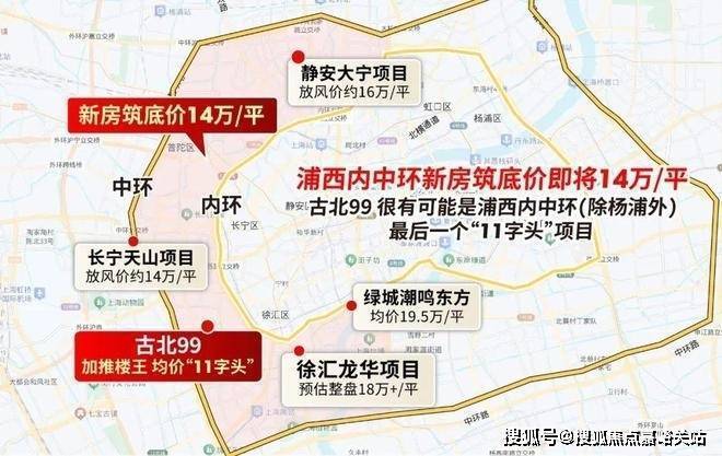 随着绿城潮鸣东方以19.5万/㎡开盘,浦西内中环房价迎来跳涨潮: