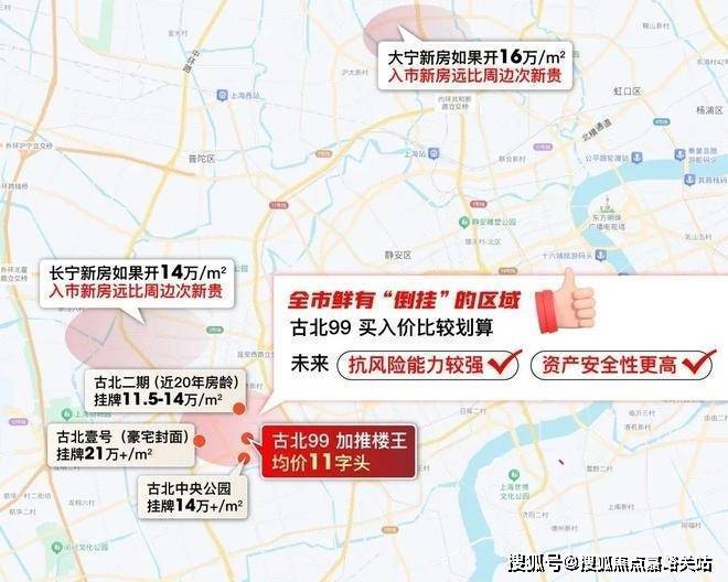 而古北二期近20年房龄,挂牌价11.5-14万/㎡,一街之隔的古北中央公园挂牌14万+/㎡,古北99甚至是全市鲜有存在“倒挂”的项目,资产安全性更高。