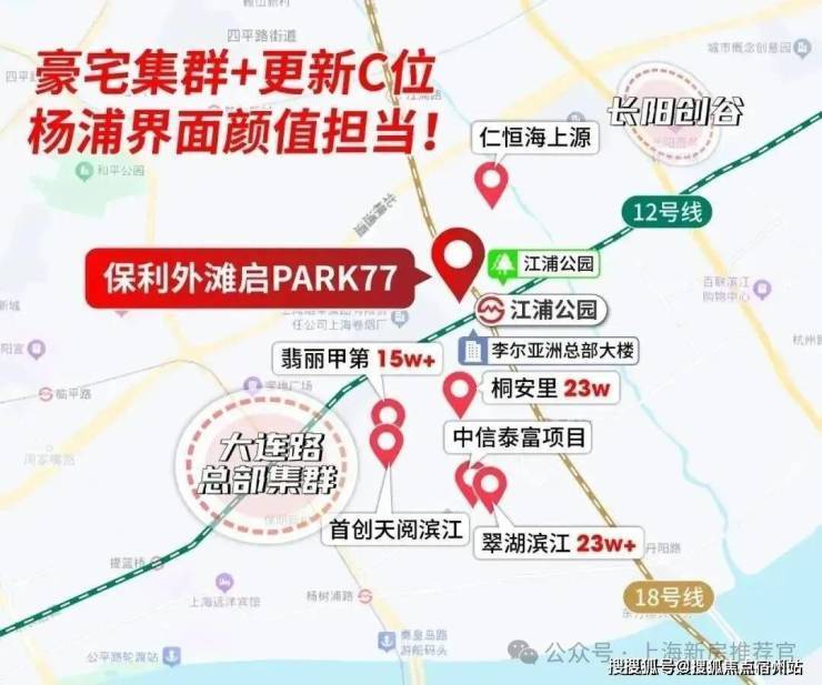 而保利外滩启PARK77与北外滩地王直线距离仅约2.2公里,未来将与北外滩共享界面更新、配套升级、生活方式迭代,更将同步承接价值的全面焕新 。
