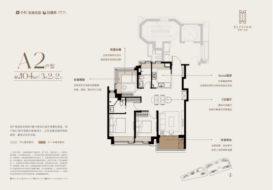 相比于104m²户型,这个106m²的边套户型差异主要在于多了270°的转角飘窗+主卫三段式+S墙分户设计+北侧无连廊,居住的舒适度有一定的提升。