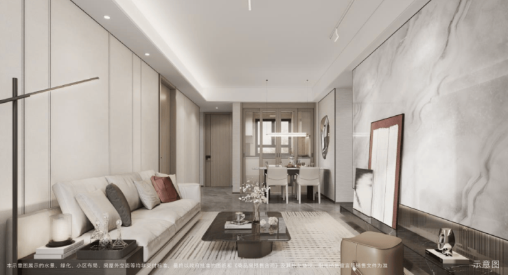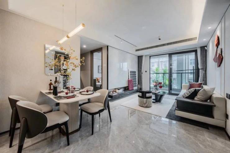 「招商象屿·星耀翠湾」营销中心电话:400-8855-420【☎营销中心已认证】客餐厅的颜值超高,地砖、墙布都在交付标准里,整体风格更为统一,将好看+好用发挥到了极致!