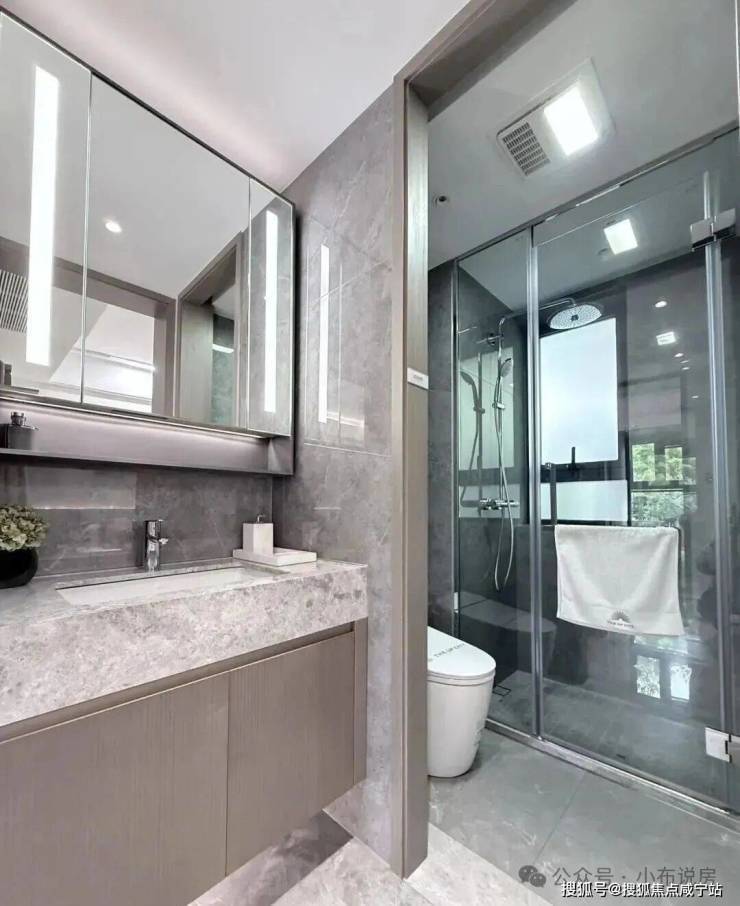 项目在个性化定制方面,也为业主准备了诸多惊喜,包括电热毛巾架、岛台轨道插座等。