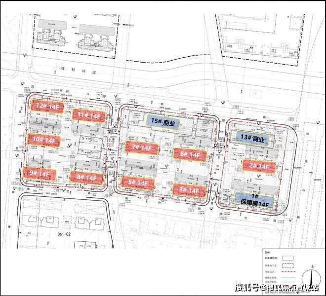 根据规划设计方案显示,项目拟建11幢14F住宅(含1幢保障房)、以及商业、配套用房等建筑。