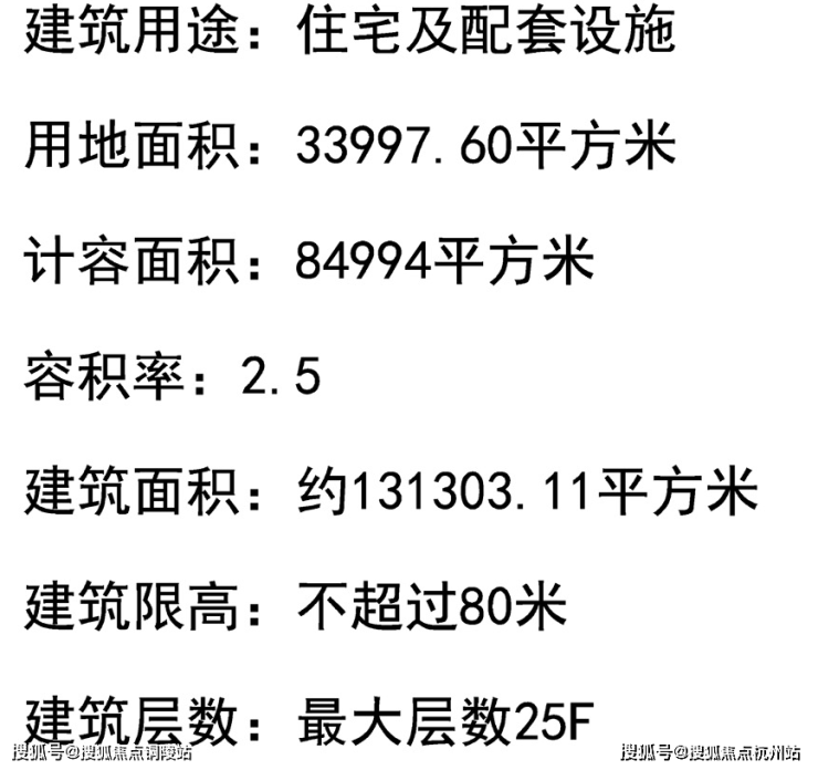 地块用地性质为普通商品房,容积率约2.5,限高80米,住宅套数下限867套,需配建5%以上保障性住房,中小套户型不得低于70%,全装修比例100%!