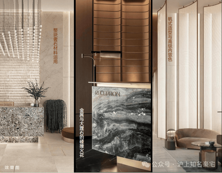 从内部大堂到走廊公区,考究的用材与色彩搭配尽显海派摩登气质与豪宅质感奢华!