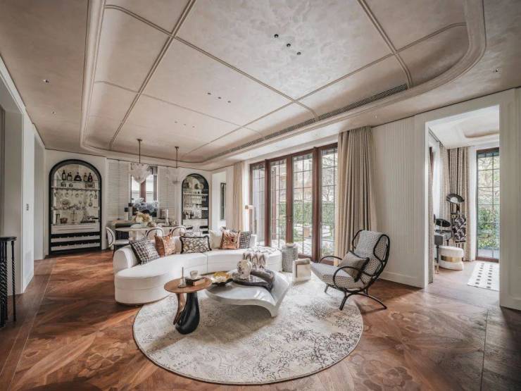 同时套房的设计被巧妙融入花园布局当中,使其最大限度地被一层花园景观环绕,居住者在室内即可将外部花园的四季美景尽收眼底,阳光与新鲜空气也能源源不断地进入室内,全方位提升居住品质。