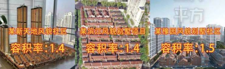 我们来对比一下去年内环内一些代表性的风貌别墅社区,普遍容积率都在1.4-1.5之间。(数据来源:项目方案公示)