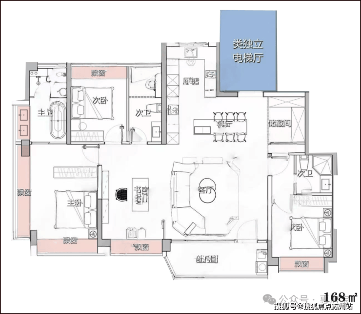 另外,网传二期也升级了140㎡和170㎡的户型配置。140㎡的四房是一梯一户+双套房设计,170㎡的大四房做了双主卧套+270度转角飘窗。