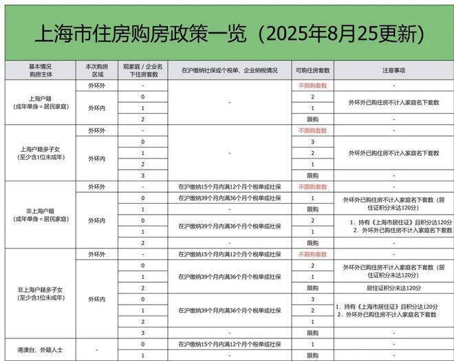 非沪籍居民家庭/单身人士:社保/个税满1年可在外环外不限购;满3年可在外环内限购1套