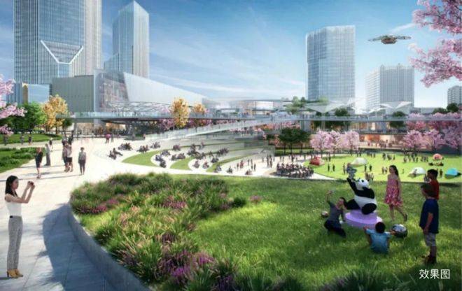 一个“商业+住宅+产业+绿化”的复合多元城市区拔地而起。