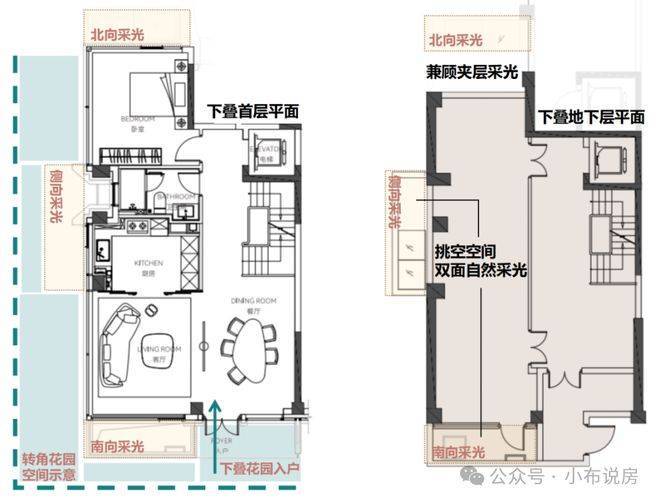 ✔一楼绿地花园,下叠可从南向花园入户,上叠从北向花园入户。
