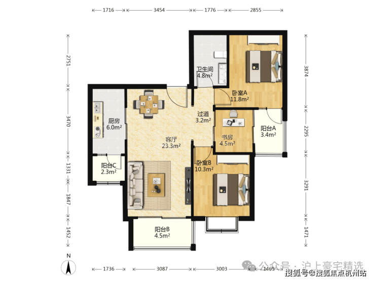 项目由三栋高层加一栋小高层建筑组成。作为苏河湾板块内次新房,以小户型为主,主要是88m²的精致2房以及102m²的灵动小3房,另外还配有66m²1房和141m²3房等多种户型。
