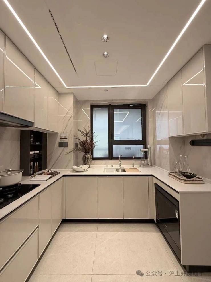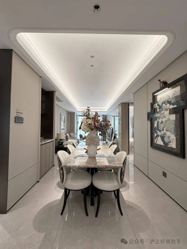 除此之外,最让我惊艳的还是这个能放下6-8人餐桌的宽绰厨房,以及这个尺度感惊人的客厅 。