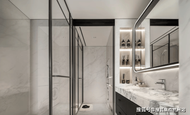 ✔高定选材:玄关地面选用“白雪公主”玉石,质感温润高级;地面延展祥云灰水墨岩,与外滩华尔道夫酒店同源材质,瞬间提升空间格调!