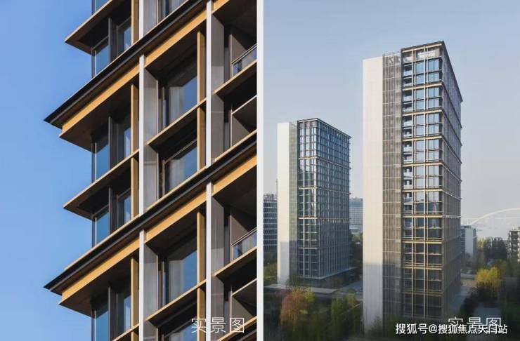 外立面采用开放式铝板设计,平整度、精度远超常规铝板;超大尺度落地窗设计,通透气派,美轮美奂。