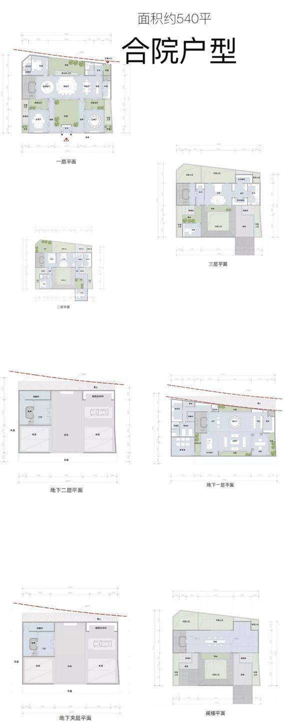 ·风貌联排合院151套(建面约250-1200㎡,主力户型约300-500㎡)
