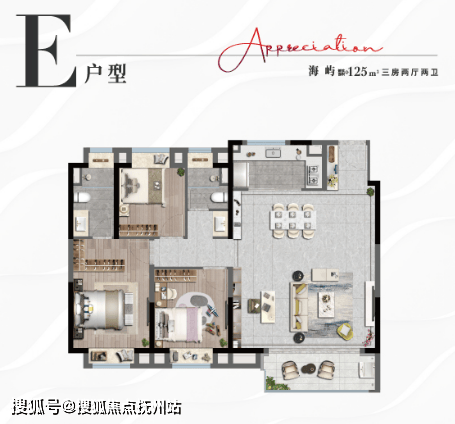- 建面约125㎡三房:空间阔绰升级,动线流畅,动静分区合理,主卧套房设计,私密尊享,适配进阶改善需求;