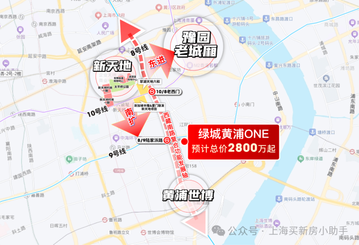 东进与豫园老城厢相连,南扩与打浦桥世博园衔接,打造为一个“大新天地”,几个片区左右相连,当中不再有断裂,联合构成整个黄浦中部板块