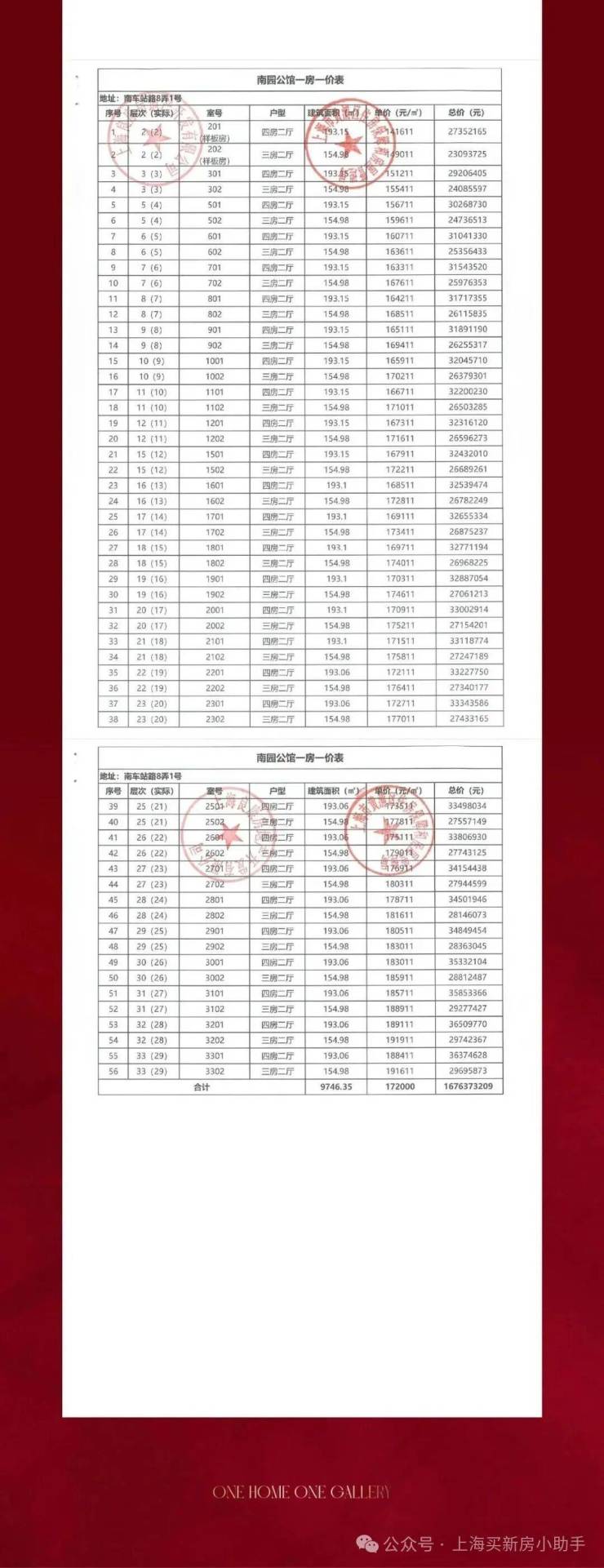 一房一价表