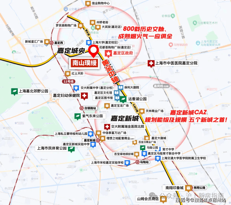 11号线嘉定西站直线距离约2.4km,嘉闵线嘉戬公路站(在建中,具体以政府规划为准)直线距离约2.5km。双线轨交,高效通勤往来,一线直抵真如、徐家汇、前滩等CBD商圈。车行近享上海绕城、沪嘉高速、嘉闵高架及沪宜公路、沪翔高速等纵横路网,畅享虹桥枢纽及国家会展中心。