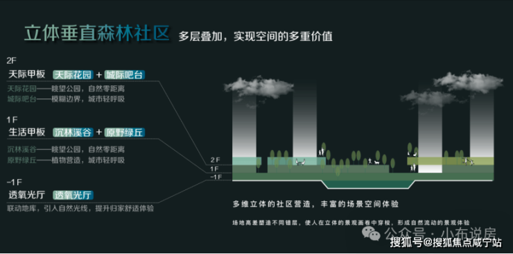 更颠覆性创新的是,它将自然向上延伸,构建出一套前所未有的立体社区: