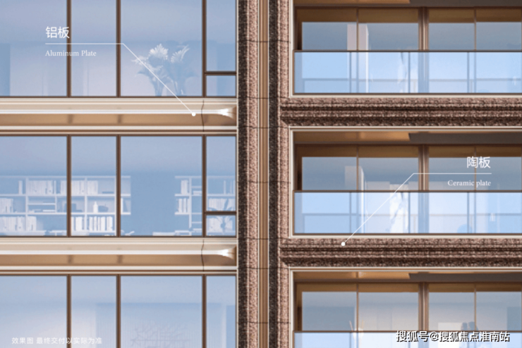 4.360°全向立面设计,大面积采用造价不菲的金属的釉面陶板,搭配铝板、玻璃。