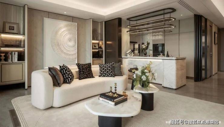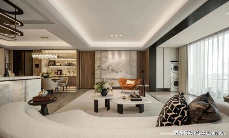 为一块奢石弧形工艺,投入翻倍的成本,整屋坚持用一种昂贵的木饰面贯通始终,从而实现整体艺术风格的统一。客厅背景墙的“烟雨江南”天然大理石,不同于传统平面背景墙,通过弧度及立体的造型处理,并镶嵌不锈钢材质,对于金茂而言,比奢石昂贵的,是让奢石真正与空间气场融为一体。空间的本质,归根到底是承载着生活的内容,在生活方式上,璞元亦在追求一种全新的理念,将更多空间赋予在客餐厅公区空间,倡导家庭成员的和谐、美好相处,这种源于国际视野的居住理念,亦缩影着璞元骨子里的“国际范”。