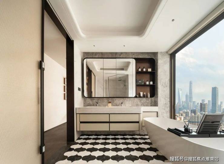 卫浴空间同样是“国际大牌集合地”:德国劳芬智能马桶、法国当代龙头花洒,主卫更是配备双台盆+独立浴缸+淋浴区,满足高端居住的舒适需求。