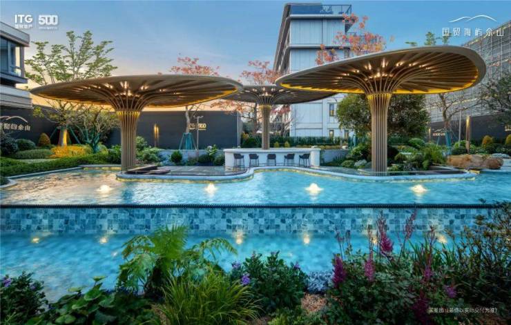 景观方面,海屿佘山项目营造的是酒店美学之下的度假感社区。