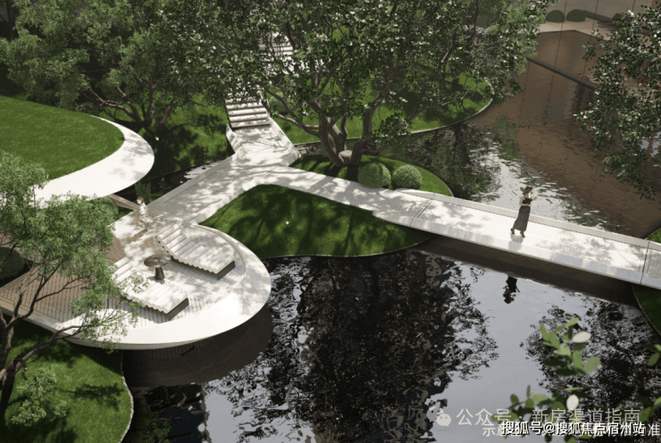 搭配一旁的水景设计,“山水相映”的画面感油然而生,为社区增添了自然野趣与灵动气质。