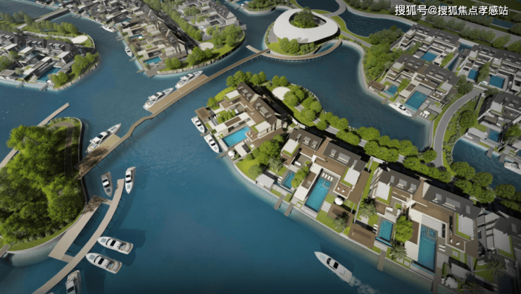 从此前曝光的设计方案就可以看出亮点,每一排别墅前都有一条渠道,引入水系,可以停游艇。