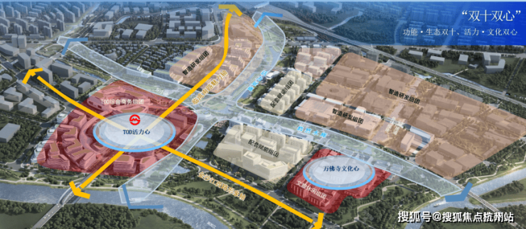 东区规划约1400亩土地,打造高品质、多元化活力城区,总建筑面积 115万方,聚焦商务研发功能。未来依托十字双轴,即临洮南路魅力轴、金沙江西路形象轴;十字水链,东小泾与九曲港;双特色心,TOD 活力心和万佛寺文化心,以及周边吴淞江、外环绿带等,实现产业引导、产城融合。