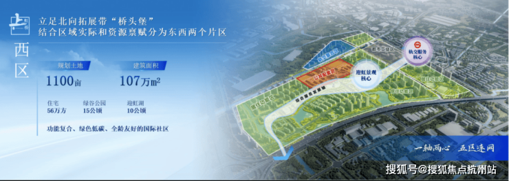 上虹桥依托东西两个片区(西居东产,共计约167公顷),遵循“以人为本、产城融合、多元包容、活力共享”的理念,整体打造创新经济集聚区、中央商务配套区和高品质国际化社区。