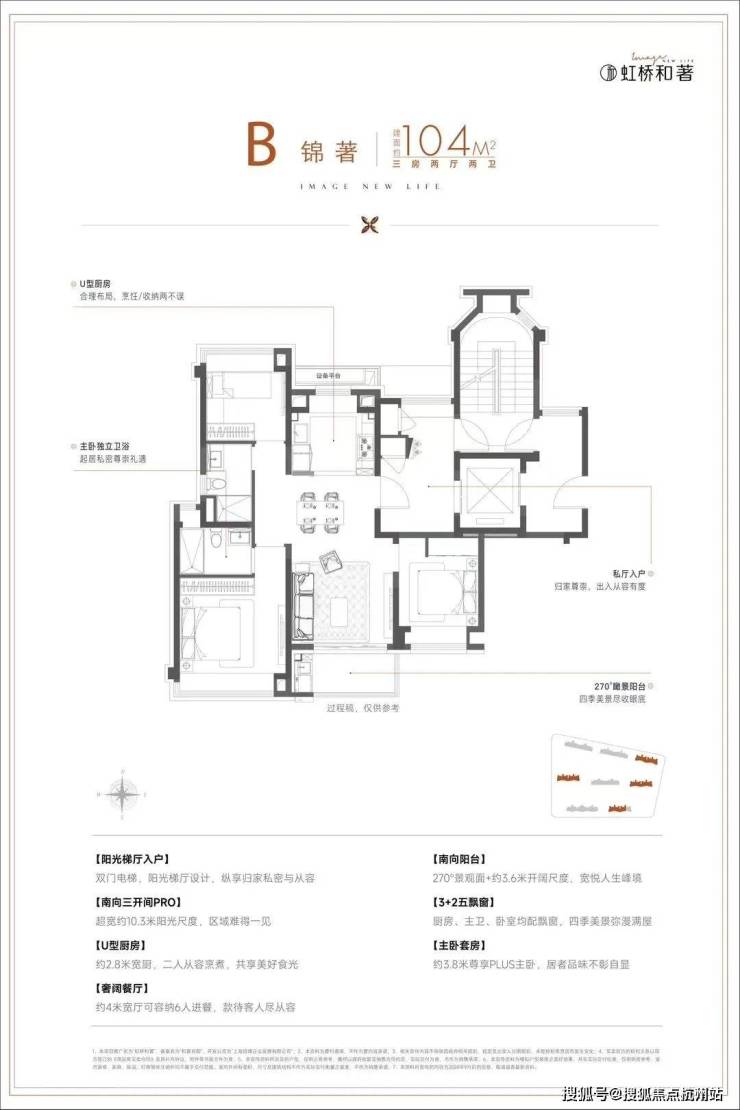 建面约104㎡舒适三房,三开间朝南+动静分区,设计水准颇高。 特别是宽景阳台的设置,为客厅配备一幅iMax广角视野,多角度观赏社区美景,适配对品质有需求的首置或首改客户。