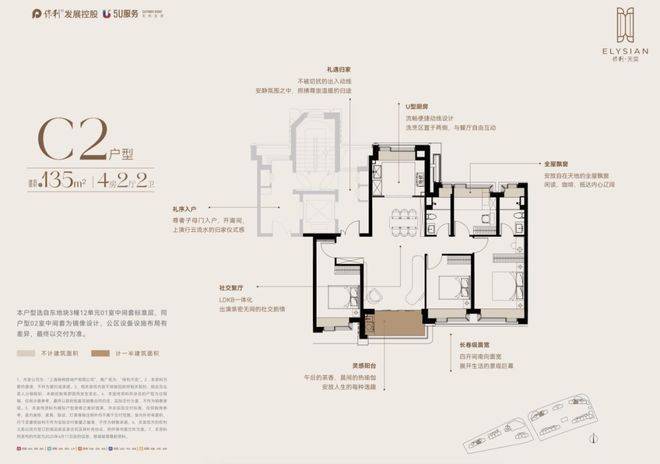 建面约135m²户型,在1100万级四房中,不仅拥有LDKB超宽客餐厅还拥有极致改善尺度!