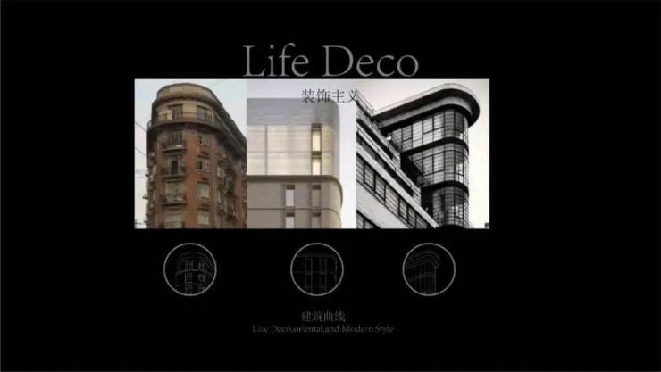 项目以上海海派建筑的设计元素为基因,将经典海派的艺术精粹与摩登优雅的现代审美相融合,流动曲线勾勒优雅大气的建筑轮廓,将“静于已心,奢享世界”的静奢主义lifeDeco前沿生活理念融入其中,以建筑语言对国际化审美与趋势作出新的诠释。
