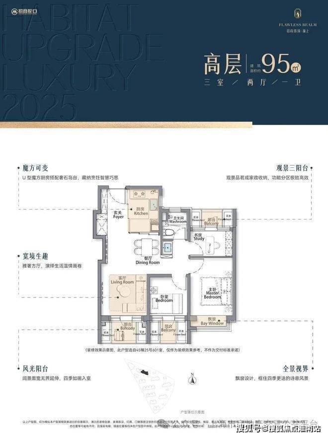 总结一下,不管您的重点是低总价还是实用性,是收纳空间还是精装,招商臻境源上这建面约95㎡的正3房户型统统能满足你,真正的一步到位神户型。
